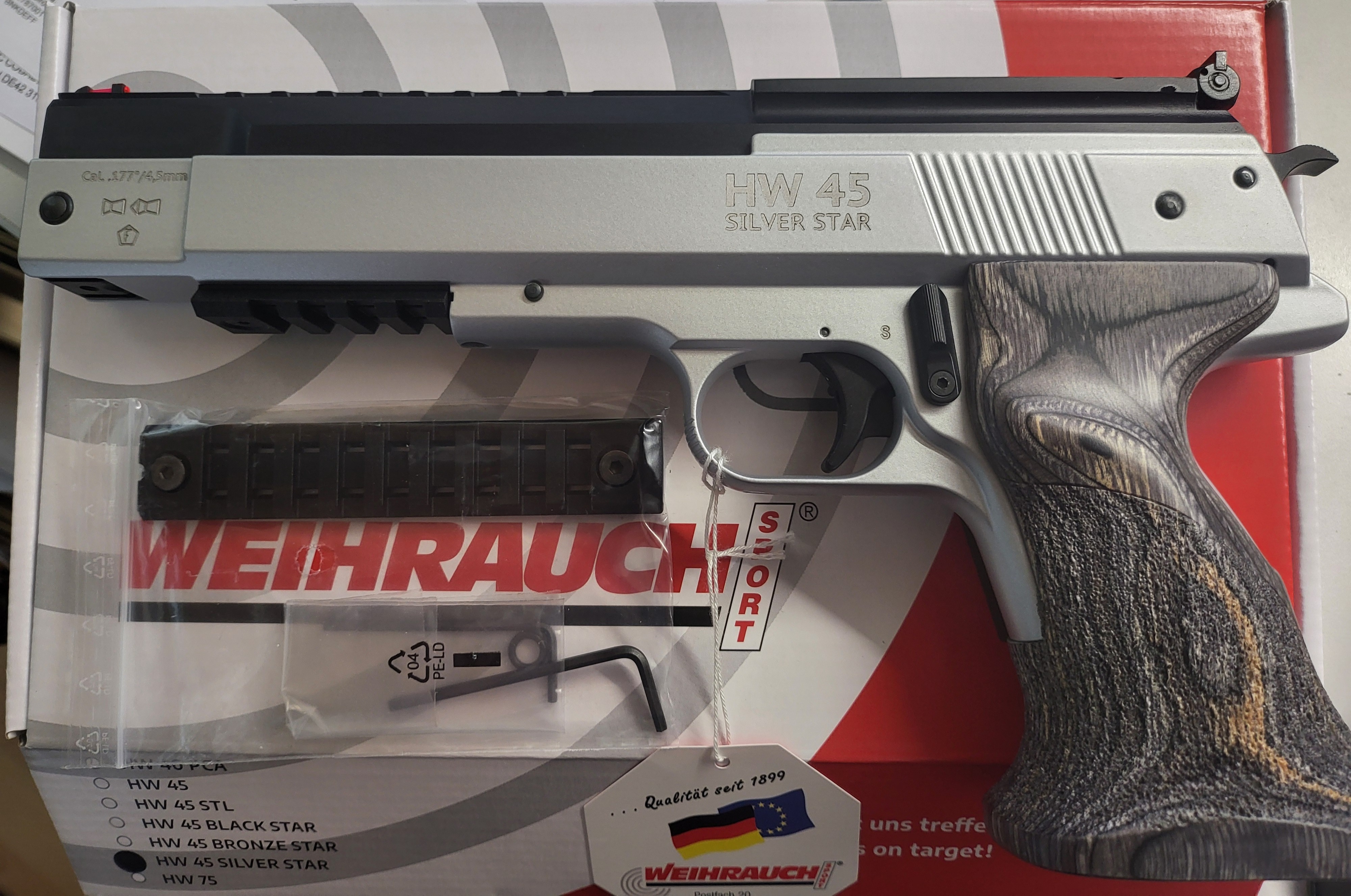 Diese Luftdruckwaffe ist im Design einer der berühmtesten Gebrauchspistolen der Welt nachempfunden. Sehr kompakte Baugröße für eine Luftpistole mit dieser sehr hohen Leistung. Wahlweise auf zwei Stufen zu spannen, ohne Pumpen o. ä., mit Federkolbensystem. Matchähnlich verstellbarer Druckpunktabzug, fein einstellbares Mikrometervisier mit Fiberoptik, Prismaschiene für die Zielfernrohrmontage, Holzgriffschalen für Rechts- wie Linkshänder passend.
