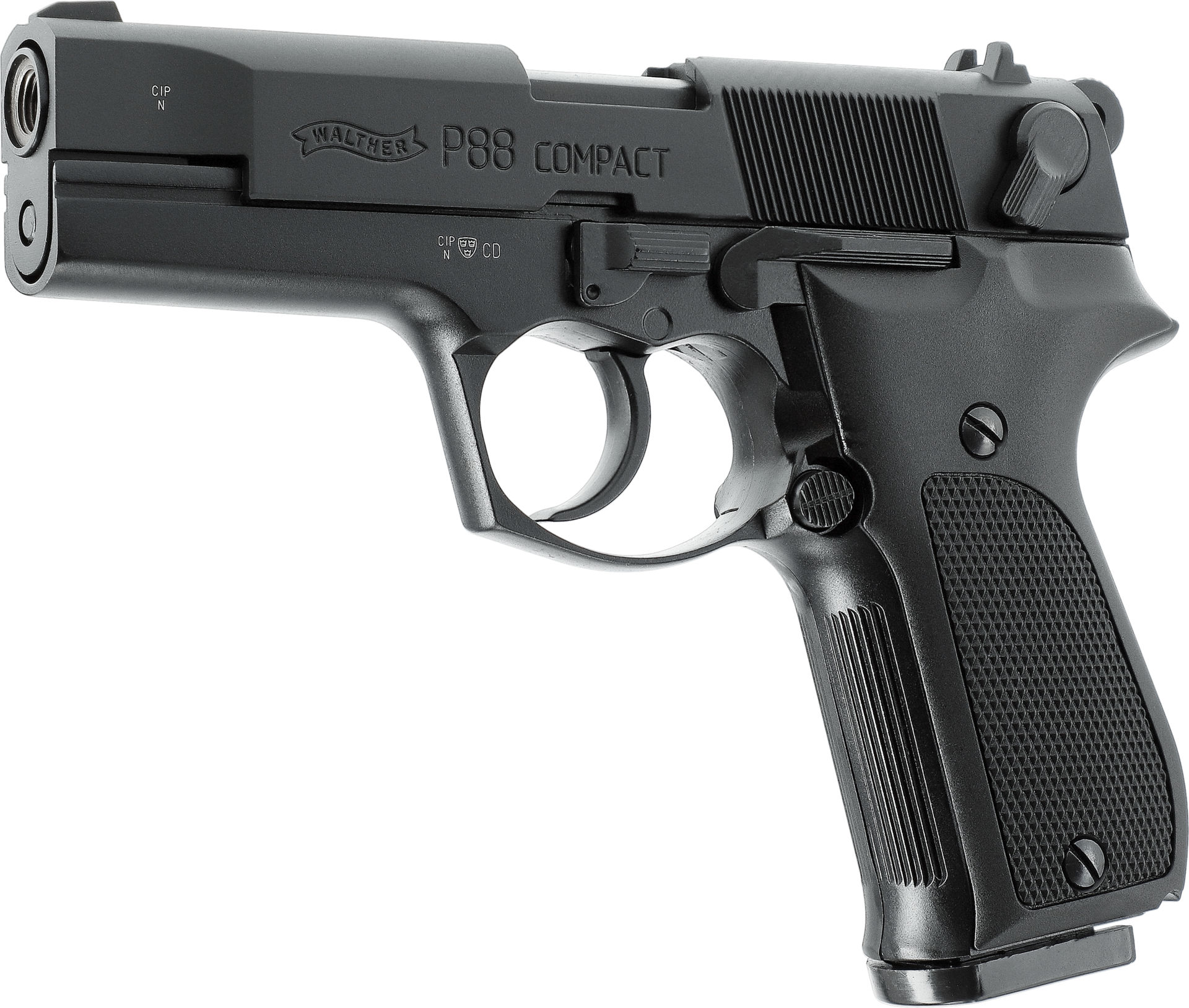 Diese Ausführung ist in schwarzer Ausführung mit Kunststoff-Griffschalen gehalten und richtet sich an Anwender, die Wert auf eine zeitlose Optik, solide Verarbeitung und ein traditionelles Pistolenkonzept legen. Die Walther P88 steht für klassische Walther-Qualität und eine kompromisslose Konstruktion.