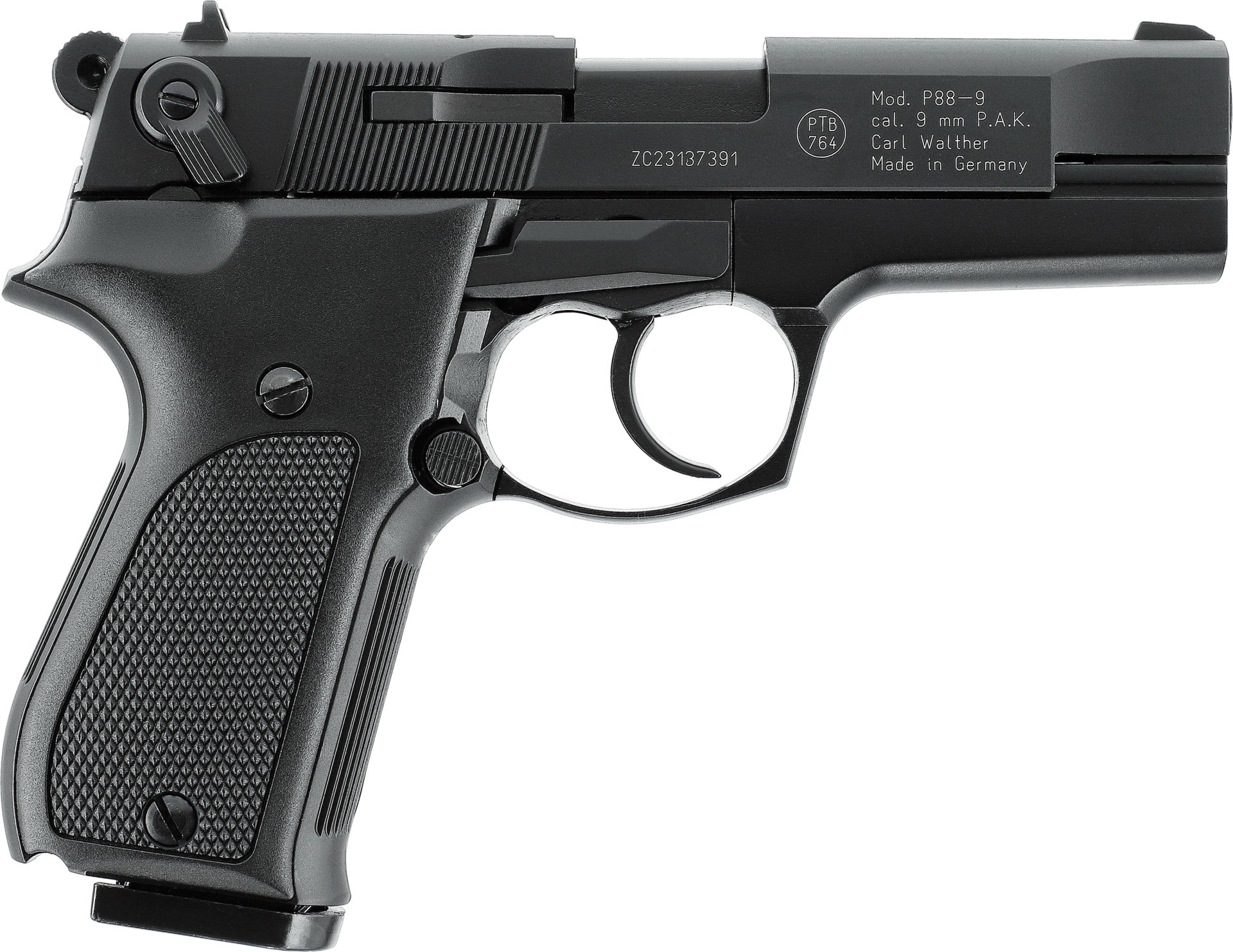 Die Walther P88 im Kaliber 9 mm P.A.K. zählt zu den klassischen Konstruktionen moderner Selbstladepistolen und gilt als Meilenstein in der Entwicklung großkalibriger Pistolen mit hoher Magazinkapazität. Als eine der frühen sogenannten „Wondernines“ verband sie robuste Bauweise mit beidseitiger Sicherung und einer für ihre Zeit außergewöhnlich hohen Belastbarkeit.